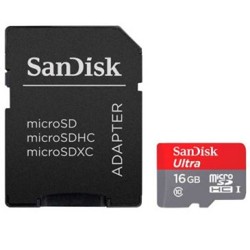 Карта памяти Sandisk Ultra microSDHC Class 10 UHS-I 80MB/s 16GB + SD adapter (SDSQUNS-016G-GN3MA)