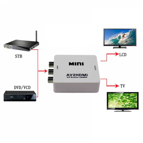 Адаптер для подключения дисплеев и других устройств с HDMI входом к источникам видеосигнала с аналоговым композитным выходом (AV).
