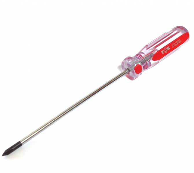 Магнитная отвертка из стали лигированной сплавом (Хром-молибден CR-MO). Длина 100мм, пластиковая ручка.