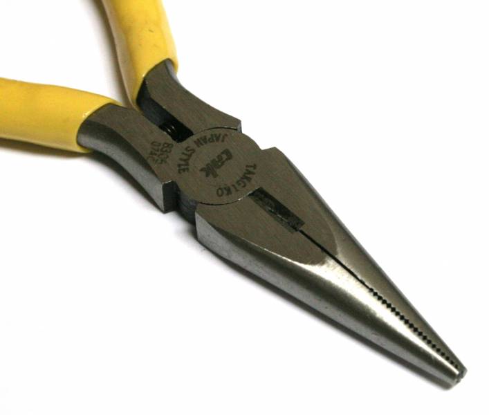 Плоскогубцы с удлиненной передней частью, прошли закалку токами высокой частоты. Материал - углеродистая сталь S45C. Твердость режущей кромки 55...60 HRC